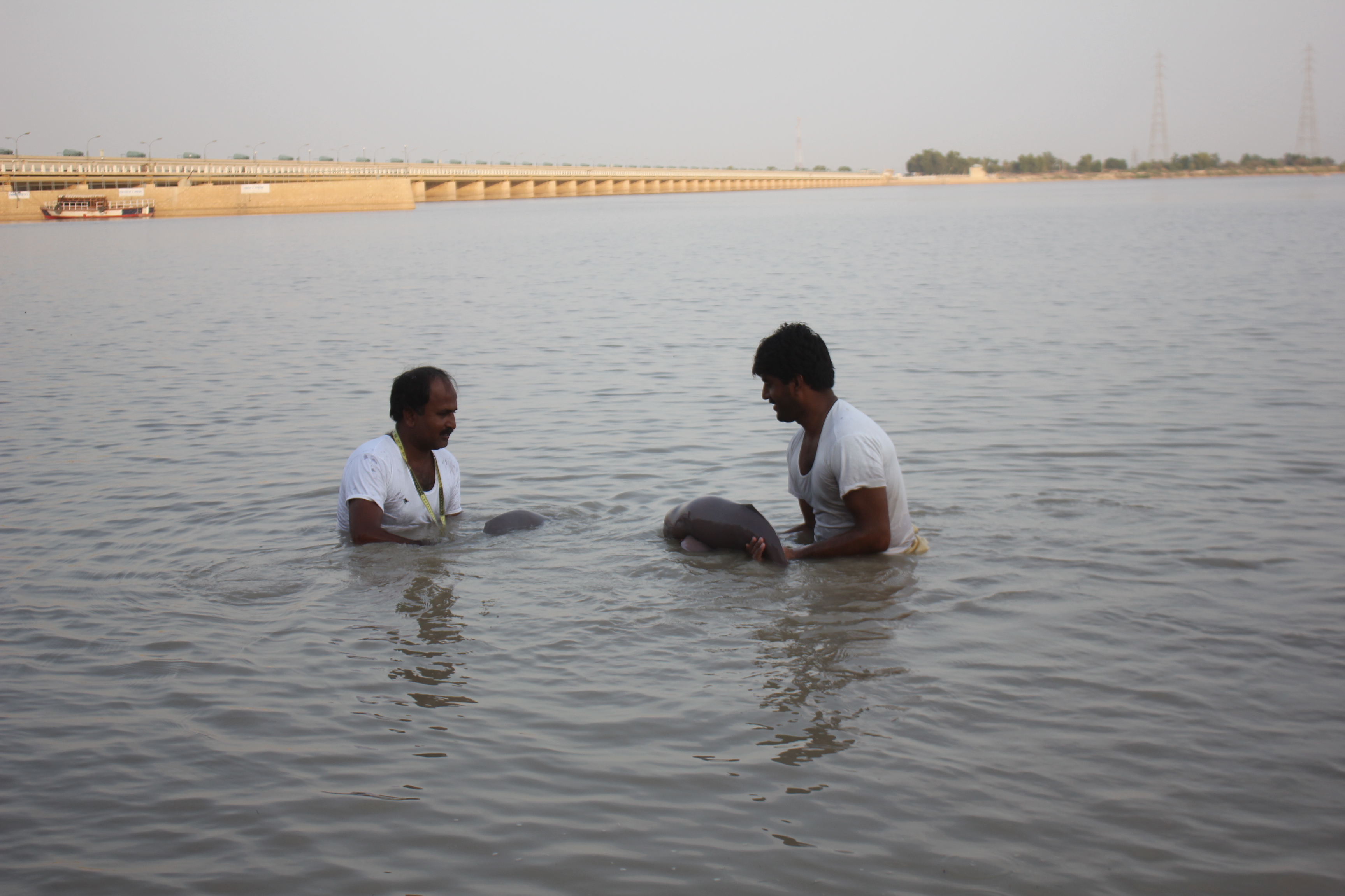 Joint rescue teams from WWF-Pakistan and the Sindh Wildlife Department regularly carry out these operations. The stranded dolphins are carefully captured, placed on a stretcher, kept moist with water and wet towels, and transported in a sound-proof vehicle and released in the main stream of the Indus River.