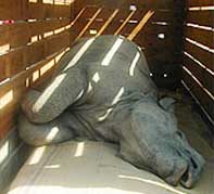 Justo antes de cerrar las compuertas de los huacales, el veterinario administra un antídoto. La madre se agita, gruñe y se pone en pie, imitada por su cría en el otro camión. Son llevados a un lugar fresco y sombreado para esperar el viaje nocturno al Real Parque Nacional Bardia.