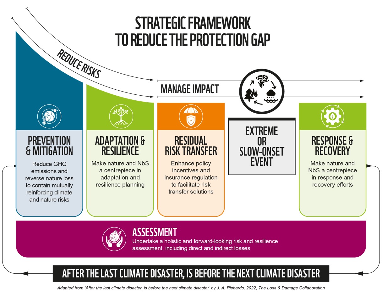 Laurence Tubiana Special Envoy to Europe for COP30 states: “The insurance protection gap leaves people vulnerable as extreme weather events hit people hard. With over half of climate-related losses uninsured globally - and more than 90% in developing countries – this is no longer just an insurance market issue, but a systemic threat to people’s livelihoods, economic resilience and even financial and fiscal stability.”