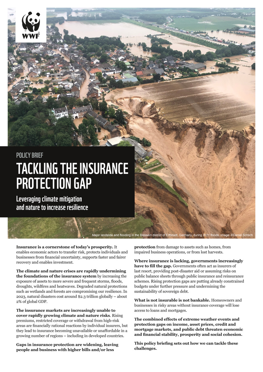In a new policy brief focusing on advanced economies, WWF warns that climate change and nature loss are rapidly eroding the foundations of global insurance markets, driving up economic losses from extreme weather events and widening the “insurance protection gap” — the share of damages left uninsured. The resulting financial exposure threatens not only households and businesses but also public finance budgets and a stable economy.